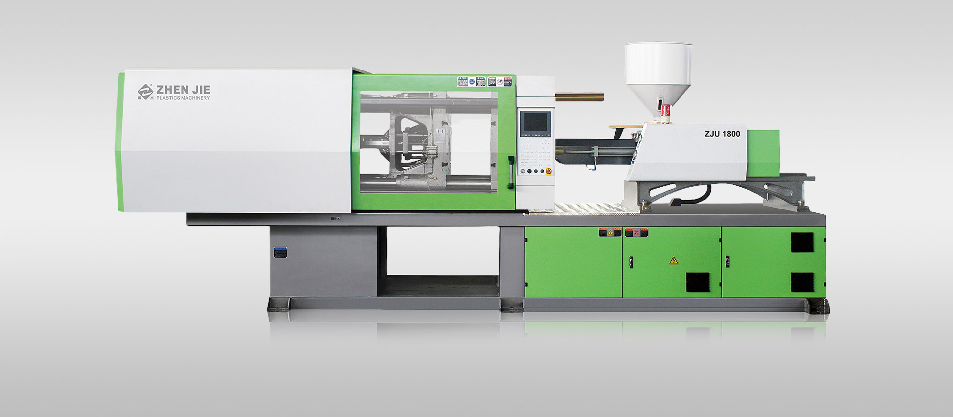 公司自主品牌"震杰"ZJ系列注射量為45-4000Tons,合模力為500-8800KN注塑機及高效節能比例變量泵系統和電木射出成型機,是集先進科技和市場新需求而研制的優質產品。適用于生產各類高精度和高強度的塑料制品。產品采用CAD、CAM技術優化設計及高精全自動數控機床加工,各部件均經過精密加工或篩選,并采用世界級優質品牌元件,按照嚴格的工藝要求進行生產、裝配、調校而成。產品結構新穎,性能穩定,高效節能,備受海內外用戶青睞。